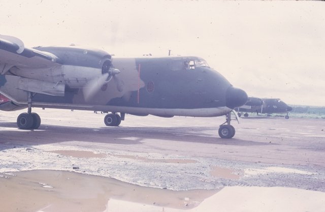"C-7A Caribou on the ground at Quan Loi. "