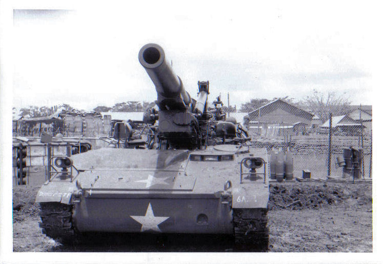 Gun # 2 with the mess hall in background and the Officer's Club Where we could smell them barbequing every night. Thank you Sir ! - Quan Loi - 1969 CClarke Photo