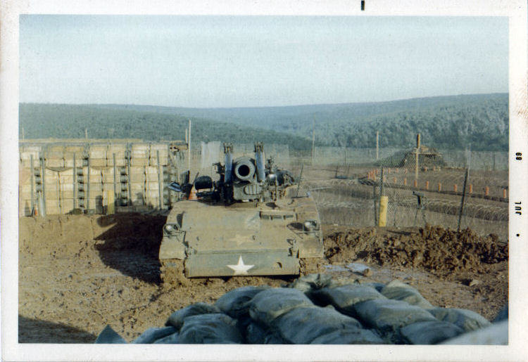 were taken on top of the maintenance bunker guard area. Powder bunker made from powder canisters in back ground. - Quan Loi - 1969 CClarke Photo