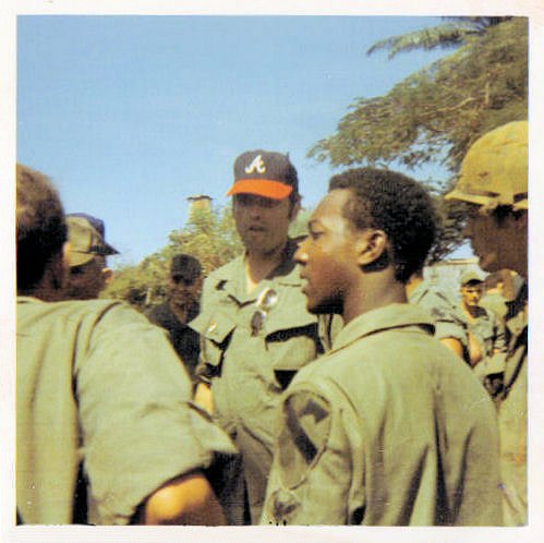 Milt Papas talks baseball with the troops at Quan Loi DCamp Collection