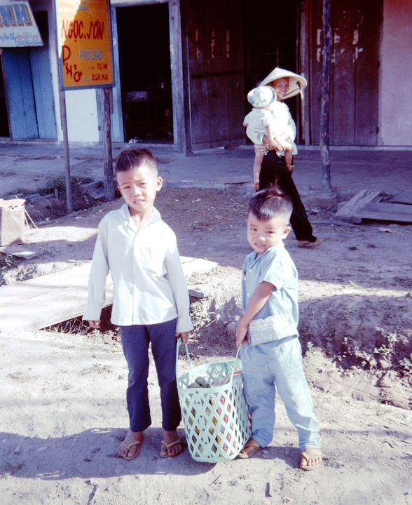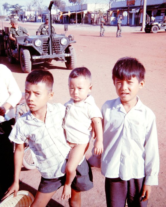24 Kids on the main street in beautiful downtown Phouc Vinh. We also called the town “Pee Vee” or “Poppa Victor”.