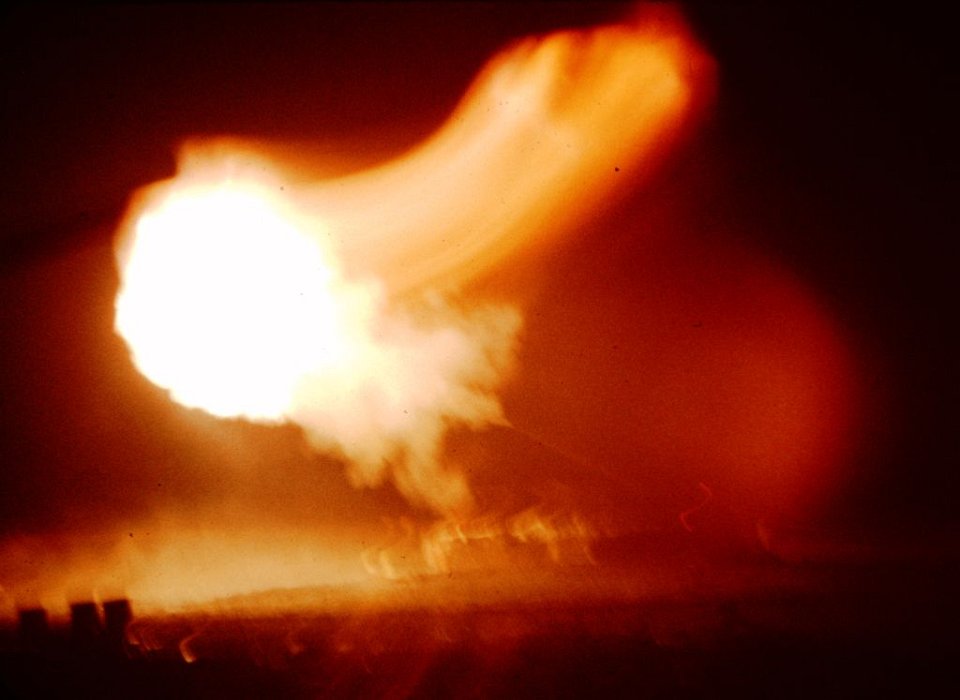 65 Charlie Battery 175mm gun firing at night….camera caught full effect of muzzle flash.