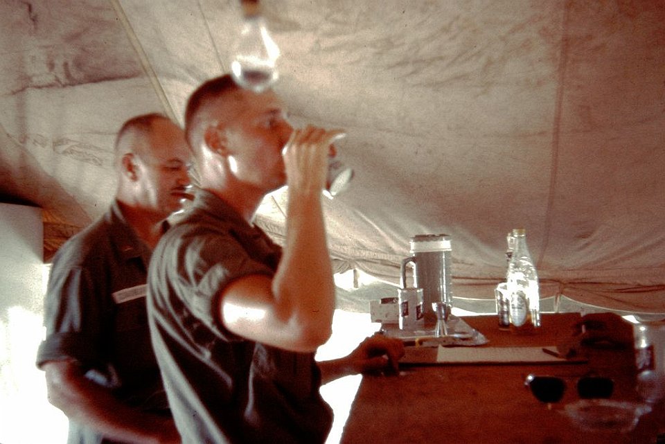 70 Al Zahorian and Duke Pond at the Officer's Club bar.