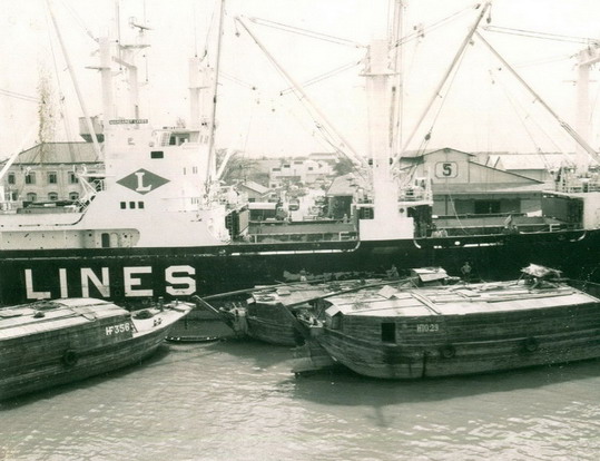 The USS Dick Lykes is moored at the Saigon Docks for unloading on