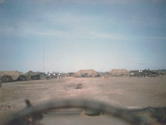 Driving into the 6/27th Artillery area, Charlie or Bravo Battery,