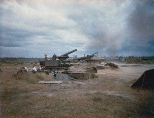 Bravo Battery 8 inch howitzers ready for a fire mission in Phouc