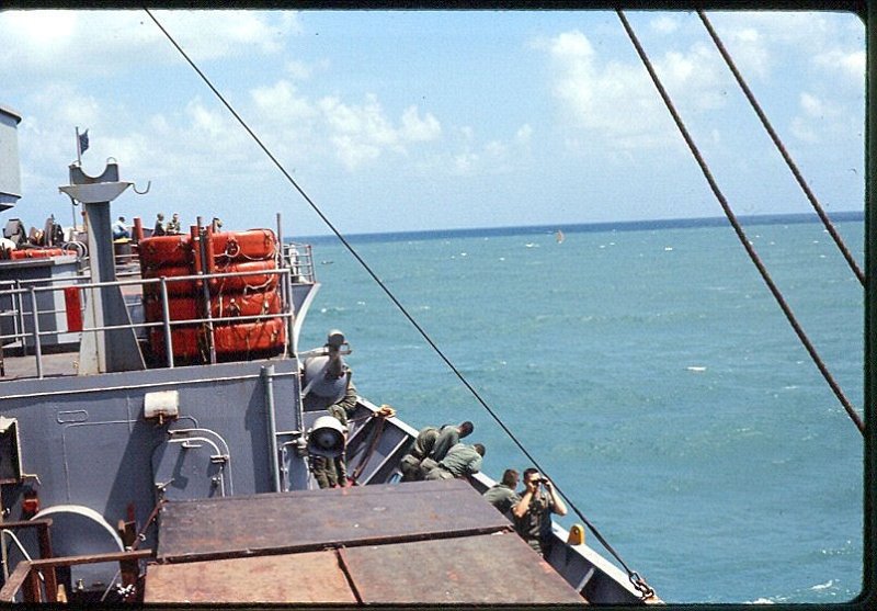 ""The USNS Gordon set sail from the Oakland Army Terminal at 1700 hours, October 4, 1965. It was the ship's second voyage since coming out of the mothball fleet. Over 3900 troops were aborad, including the personnel from the other battalions in the 23rd Artillery Group." (See Note # 1 Below)"