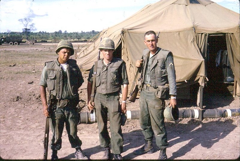 "I'm not sure what was taking place here, but I think we went on a patrol near by to put on a show for some news pictures, 'ha ha' what a joke!! I am the one with my steel pot off. "