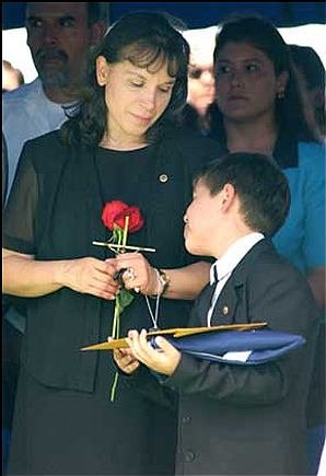 The small South Texas community of San Diego said goodbye to their soldier, son, brother and friend, Army Spc. Jose Amancio Perez III at his funeral, held at St. Francis de Paula Church in San Diego on June 6. Amancio, as his friends and family knew him, a 22 year old Army medic assigned to the 6th Battalion, 27th Field Artillery Regiment from Fort Sill, Oklahoma, was killed when his convoy was ambushed on a supply route and he was shot in the chest in Taji, Iraq on May 28. He deployed to Iraq on April 5. Several days after the funeral, the family learned that Perez had been the driver of the humvee, and was carrying three passengers, one a 1st Sgt. and the second in command of his unit. They learned that after Perez had been shot, he drove the others to safety. They tried to render aid to him, but it was too late, said his aunt, Lala Gonzalez. Friends and family were stunned to learn of his death, especially after they had started to relax once President Bush announced on May 1, that the major combat phase of the war was over. Perez's cousin, Melissa Barrientes was shocked by the news that he had been killed. I didn't believe it. I thought our kids would play together and we would meet at graduations. I thought the war was over, she said, still shocked by the news. A 1998 graduate of San Diego High School, Perez is one of 50 soldiers who have been killed since Bush's announcement, and one of 26 military personnel who have been deployed to the Iraqi conflict from San Diego, according to Vivian Saenz Ramirez, spokesperson for the San Diego Family Support Group. The group has been holding weekly vigils in the park across from St. Frances de Paula Church to support the families with loved ones who are deployed. Perez is the second soldier from the diocese that has been killed in the war in Iraq. The other, 1st Sgt. Joe Garza from Robstown was killed in Iraq on April 28, when he was thrown from a vehicle in Baghdad. Perez's body was flown into McAllen and arrived at his hometown on the night of June 4, welcomed by the community, who lined Highway 44 waving American flags and candles, to honor the fallen soldier. At the funeral, 20 friends and members of the San Diego Family Support Group, all bearing the U.S flag, lined the steps of St. Francis de Paula Church in a V-formation to welcome the grieving family, friends, fellow soldiers, community and finally the body of Spc. Perez, to say a final goodbye to this well-loved and dedicated soldier. One of the flag bearers, Amancio's high school friend, Noel Ibarra, who is in the U.S Air Force smiled when remembering his fallen friend, He was a real small guy, but he had the biggest heart, he said. Spc. Alvie Jones, who served with Perez for two years at Fort Sill, travelled from Oklahoma to say farewell to his Army buddy, who he was with the night before he left for Iraq. He was one of the best...He always put others before himself. He took care of everyone, broke, sick or hurt....and paid the ultimate sacrifice, he said. Mourners crammed into the small church, standing in the aisles and at the back, the pew ends decorated with red, white and blue ribbons and flowers, as seven soldiers carried in his casket. In his homily, celebrant Bishop Edmond Carmody said, This great turnout is an indication of the love and appreciation for you, Jose Amancio. Bishop Carmody thanked Perez's parents, Elsa and Jose Amancio Perez Jr. for providing such a great son and reminded all gathered to appreciate the hours of training, jogging with heavy boots, nights of moving and travel...to serve his country. The bishop consoled friends and family, telling them Perez lived his baptismal promise all his life.....and he is going to the Christ he spoke to everyday. He carried the medal of the Holy Spirit up until death....your son is with the Lord God..one day he'll meet you again. Rene Salaiz, Perez's best friend since Kindergarten, recalled his kind spirit at the funeral service. My friend was a great person, someone to call when you were in trouble. He loved his grandma's cooking....he loved all his family deeply. He loved the Army. He would show his dog tags to everyone. In the Army he was an inspriration to many and now he is a hero, he said. If you can hear me, I love you. I'll never forget you, Salaiz cried to his fallen friend. Belinda Dominguez and Debbie Zuniga of The Coastal Bend Chapter of the Blue Star Mothers presented the gold star flag to Perez's mother, Elsa Perez. May he be a reminder of how precious our freedom is. From one gold star mother to another, said Zuniga as she presented the small flag to Elsa Perez, which Perez's brother, Joshua Perez, 9, held on to for the rest of the funeral. Spc. Perez also received both the Purple Heart and Bronze Star medals, which were presented to his parents. The Purple Heart is awarded for being wounded in action by the enemy, (which led to Perez's death), and the Bronze Star is awarded for heroic or meritorious achievement in combat. At the San Diego City Cemetery, the American flag flew at half-mast over the grave site of Perez. Seven soldiers honored Perez by firing the 21 gun salute over the casket, as family and friends looked on with sadness, while other fellow soldiers folded the flag that covered his coffin, into a triangle, and presented it to Perez's mother, Elsa Perez. Deacon Celestino Perez, from the Diocese of Galveston-Houston, a Marine Vietnam war era veteran and Elsa Perez's cousin, was among the clergy at the funeral Mass and many family members who were born and raised in San Diego. He said the support of the parish community was helpful to the family and the cornerstone for their faith. Just like Amancio, our family's foundation was laid at St. Francis de Paula. The church is small but their faith is strong. Perez's long-time girlfriend, Amanda Casas, 20, said the two had been dating for seven years and last saw Perez in February before he left for Iraq. He was strong, smart and loving. He never gave