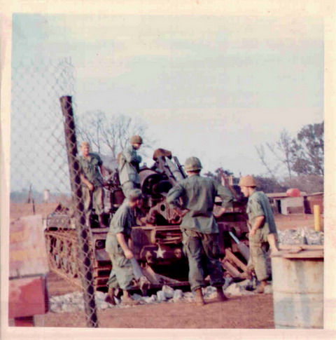 February 1970, No. 2 Gun Working on Fire Mission Quan Loi, Vietnam Ralph Porter Photo